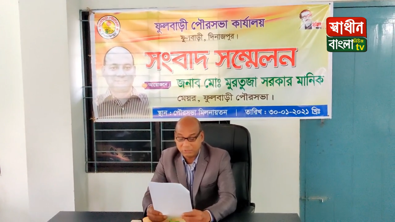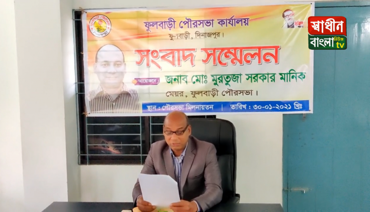 দিনাজপুরের ফুলবাড়ী পৌরসভার সভা কক্ষেসকাল সাড়ে ১১টায় ফুলবাড়ী পৌরসভার সভাকক্ষে ১০ বছরের উন্নয়নমূল কাজের চিত্র তুলে ধরে সাংবাদিকদের নিয়ে এক সংবাদ সম্মেলন করেন মেয়র মুরতুজা সরকার মানিক।