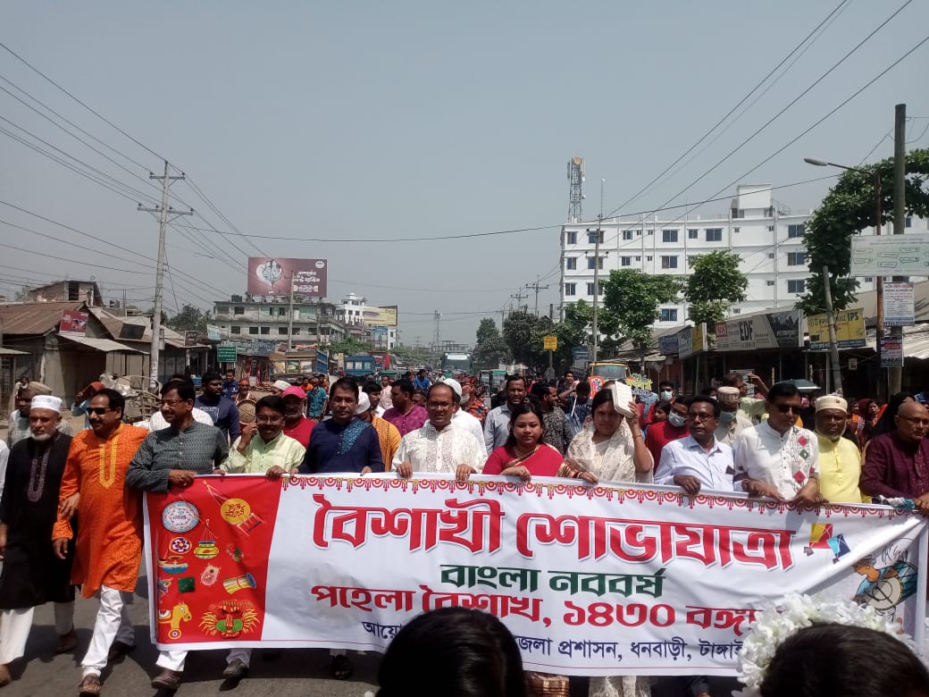 এ সময় মঙ্গল শোভাযাত্রা,ধনবাড়ী প্রধান প্রধান সড়কসহ উপজেলা পরিষদ এর কায়ালয়ে এসে শেষ হয়।