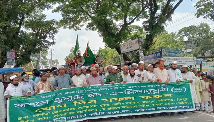 ঢাকা মহানগর গাউছিয়া কমিটির সভাপতি ও ফরিদগঞ্জ উপজেলা গাউছিয়া কমিটির প্রধান উপদেষ্টা আব্দুল মালেক বুলবুল সাহেবের তত্ত্বাবধানে এবারের জশনে জুলুছে আনন্দ মিছিল অনুষ্ঠিত হয়।