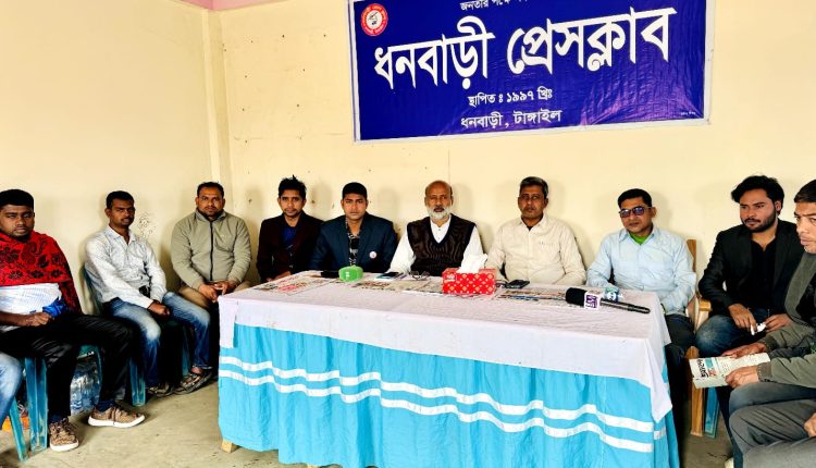 মঙ্গলবার (২০ জানুয়ারি) দুপুরে ধনবাড়ী প্রেসক্লাবে ইলেকট্রনিক ও প্রিন্ট মিডিয়ায় কর্মরত সাংবাদিকদের সঙ্গে এ সভা অনুষ্ঠিত হয়।